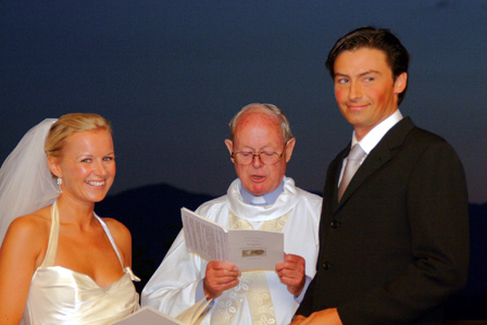 Annabel Grove and Daniel Di Domenico are blessed at Desert Springs by Annabel’s grandfather, the Reverend Julian Dawes. |