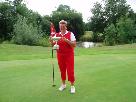 Pictured with her trophy is the newly-crowned Champion of the 2009 English Ladies’ International Seniors Open in Cambridge, Christine Langford, pioneer of Golf 4 Women at Desert Springs in Spain. |