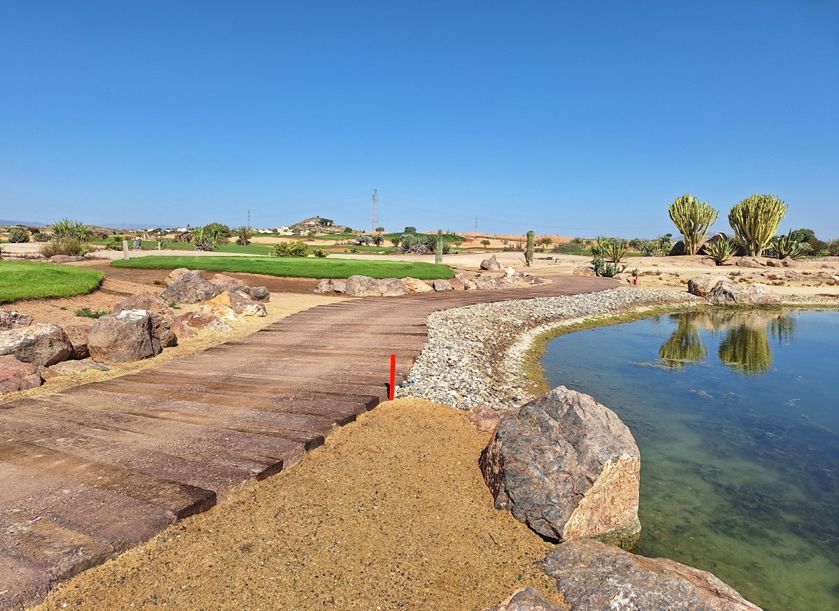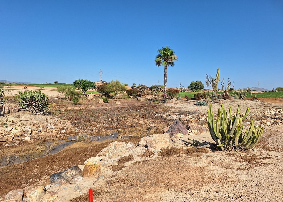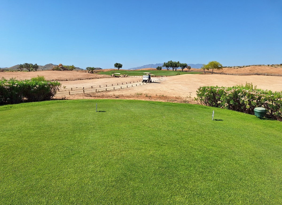 - Thorough improvement initiatives for holes 7, 12, and 14. In these locations, we will clear desert areas of weeds, repair pathways and bridges, and replant with aesthetically pleasing, low-maintenance native plants suited to Almeria’s climate. All existing olive trees and other trees will be pruned, and irrigation enhancements will be implemented to further improve turfgrass quality. Our approach will initially focus on these specific holes, with future expansion across the entire course.