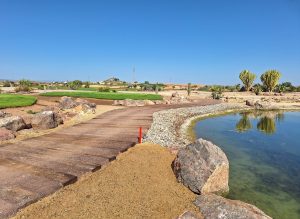 - Hole 14: Complete reconditioning plus replanting within the desert areas around the tees. New cacti and plants have been planted, boulders have been placed on the lake shore next to the tee area, oleanders and cacti from our nursery have been transplanted, the wooden bridge has been repaired and varnished.
