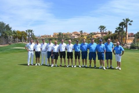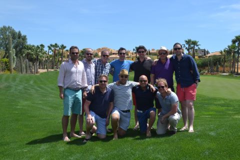 Marcus Trescothick (Back Row, 2nd Left) Somerset County Cricket Club Captain with his team relaxing after the completion of their Pe-Season Training Camp at Desert Springs Resort