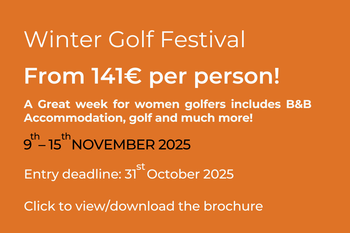 The resort has been selected by the Elite players of the GB&I Squad, The Ladies Golf Union & the Women’s Elite Squads of the Golf Union of Wales as well as several tournament LET Professionals as a winter home for their training and play, an indication of the excellence of the women friendly enviroment, Academy of Golf and Indiana Course.