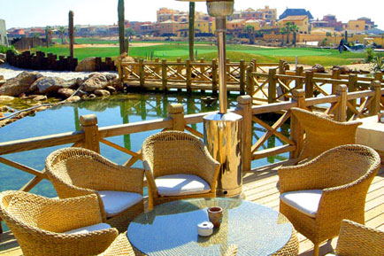 On from reception, the Club has a sophisticated and very comfortable limed oak lounge and bar, which leads into a long shaded veranda and thence to a magnificent long wooden deck over Powder Creek Rapids and Mirror Pool. A Golfer’s Deck Menu is served here; open to the winter sun and shaded in the heat of summer, this has to be one of the most delightful sitting out spots in Spain.