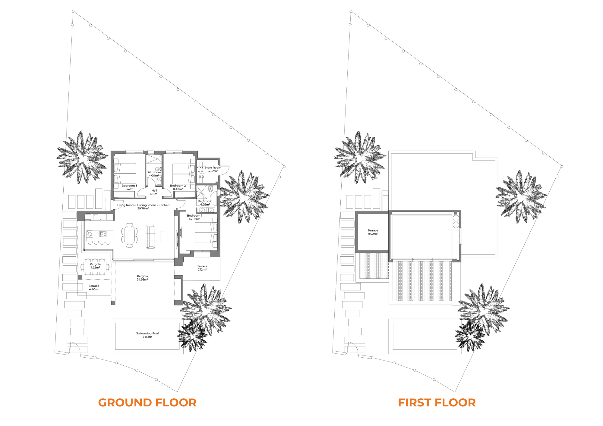 The expansive 91.42m² ground floor layout is thoughtfully designed to maximise natural light and enhance open-plan living. The master bedroom enjoys direct access to a private terrace, offering a secluded retreat to unwind in serenity. The spacious living and dining areas extend effortlessly onto expansive terraces, complete with a pergola, complemented by additional open terraces, creating an idyllic setting for alfresco dining, relaxation, and entertaining.