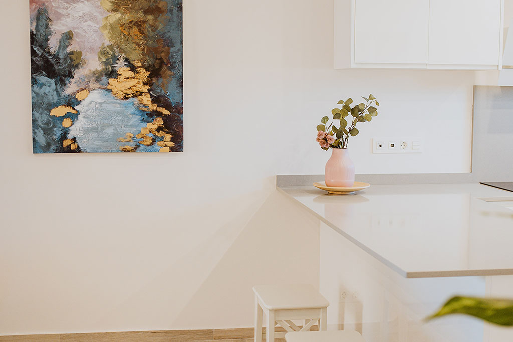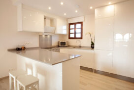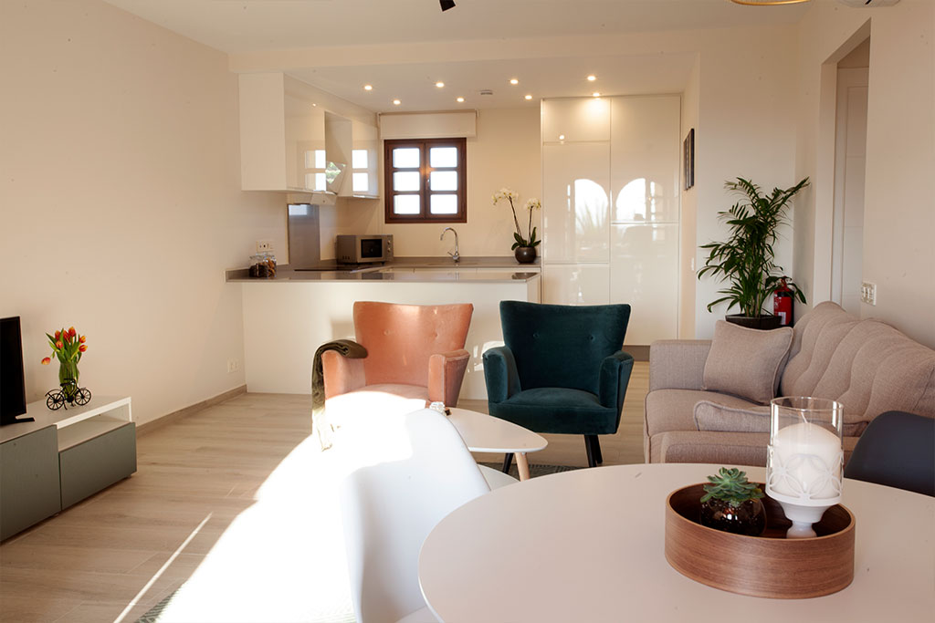 High quality finishing’s include; an attractively tiled bathroom and shower room. An open plan kitchen with a scratch and stain resistant ‘Compac’ countertop, with the fridge/freezer and washing machine integrated within the cupboards.  A Ceramic hob, cooker hood & microwave. Air conditioning, double glazing, mirrored wardrobes to bedrooms with high quality sanitary ware and fittings throughout.