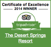 It is with great pleasure that we announce that The Desert Springs Resort, Europe’s only international award-winning luxury family resort and championship desert golf course in the Almeria region of Andalucía, south-east Spain, has received a TripAdvisor Certificate of Excellence award for 2014. This award denotes Desert Springs being honoured as a top-performing holiday resort for the second consecutive year as reviewed by travellers on the world’s largest travel site.